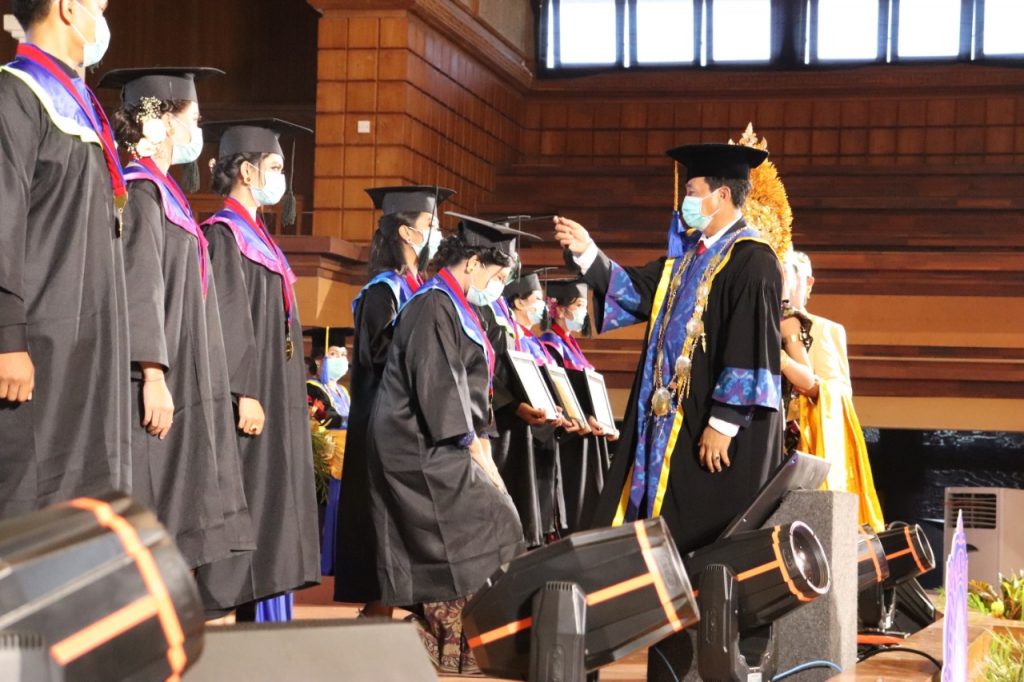 Sementara kedua adalah wisuda yang diatur sendiri oleh PTNP dengan kegiatan pengukuhan seluruh wisudawan. Wisuda kali ini merupakan wisuda virtual pertama yang dilaksanakan oleh Poltekpar Bali.