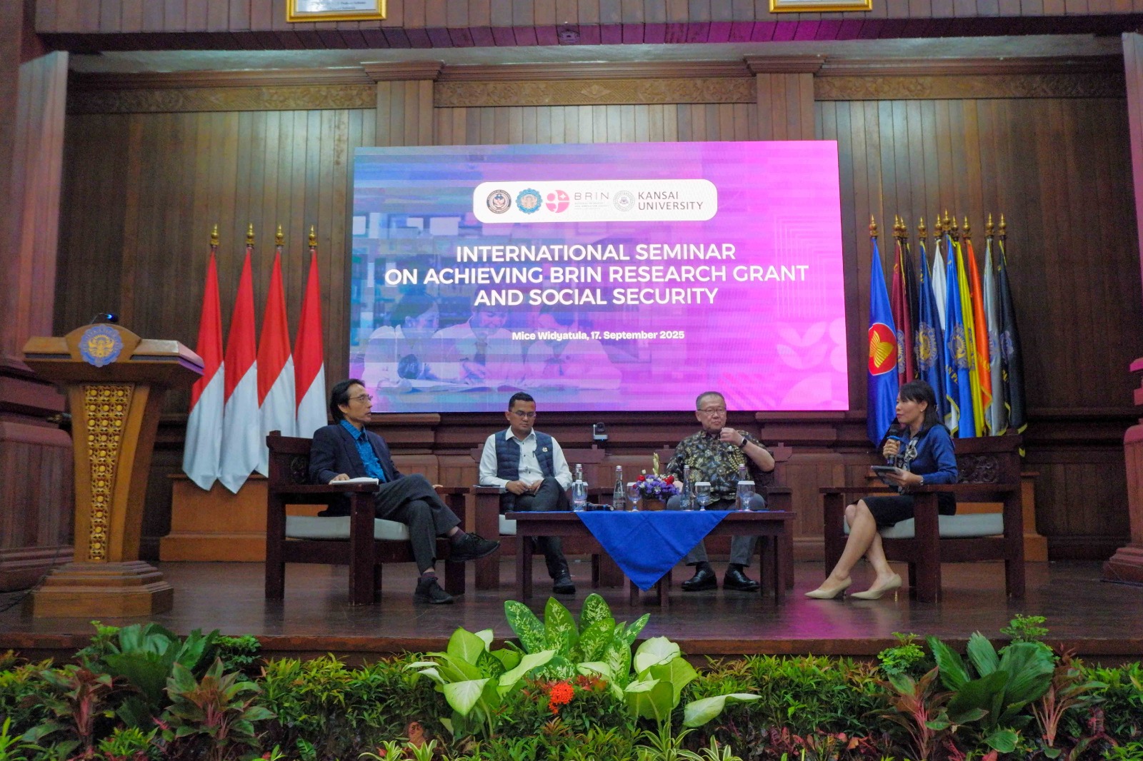 NUSA DUA – Politeknik Pariwisata Bali (Poltekpar Bali) bersama Badan Riset dan Inovasi Nasional (BRIN) serta Kansai University, Jepang, memperkuat sinergi riset internasional melalui penyelenggaraan International Seminar on Achieving BRIN Research Grant and Social Security di MICE Widyatula Hall, Poltekpar Bali, Rabu (17/9).