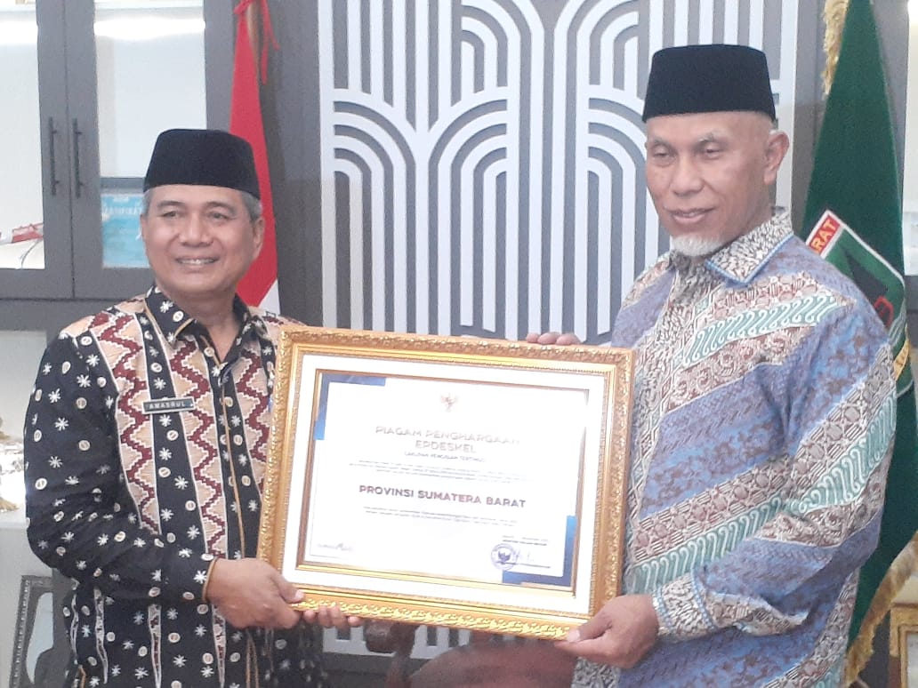 Penghargaan ini diterima secara langsung oleh Dinas Pemberdayaan Masyarakat Desa yang diwakili Kabid Pemerintahan Desa dan Nagari Desranto Boy.