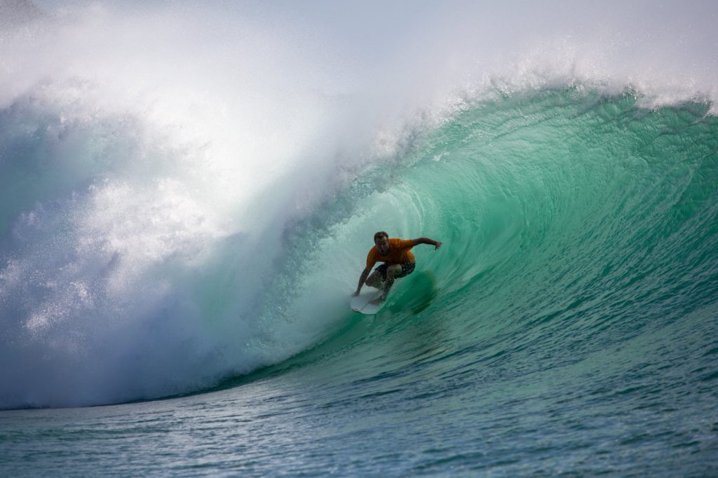 Rekan Hawaiian Koa Smith juga dengan ahli terhenti dan berkelok-kelok di ombak setinggi 2 meter yang menganga. Sementara itu, mantan legenda WCT Taj Burrow (AUS) memilih untuk menunggu dengan sabar ombak terbesar dan memukau penonton dengan keterampilan tuberiding punggungnya yang sempurna, menempel ke dinding dengan punggungnya jauh di bawah bayang-bayang beberapa tube hari itu.