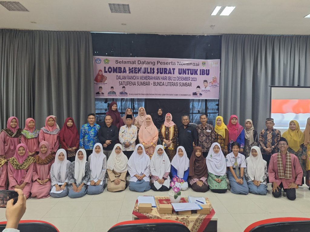 PADANG, PARADISO INDONESIA – Lomba menulis surat untuk ibu, yang diselenggarakan oleh Satu Pena Sumatra Barat , bertempat di Aula Dinas Kebudayaan, Kamis, 14/12/2023.