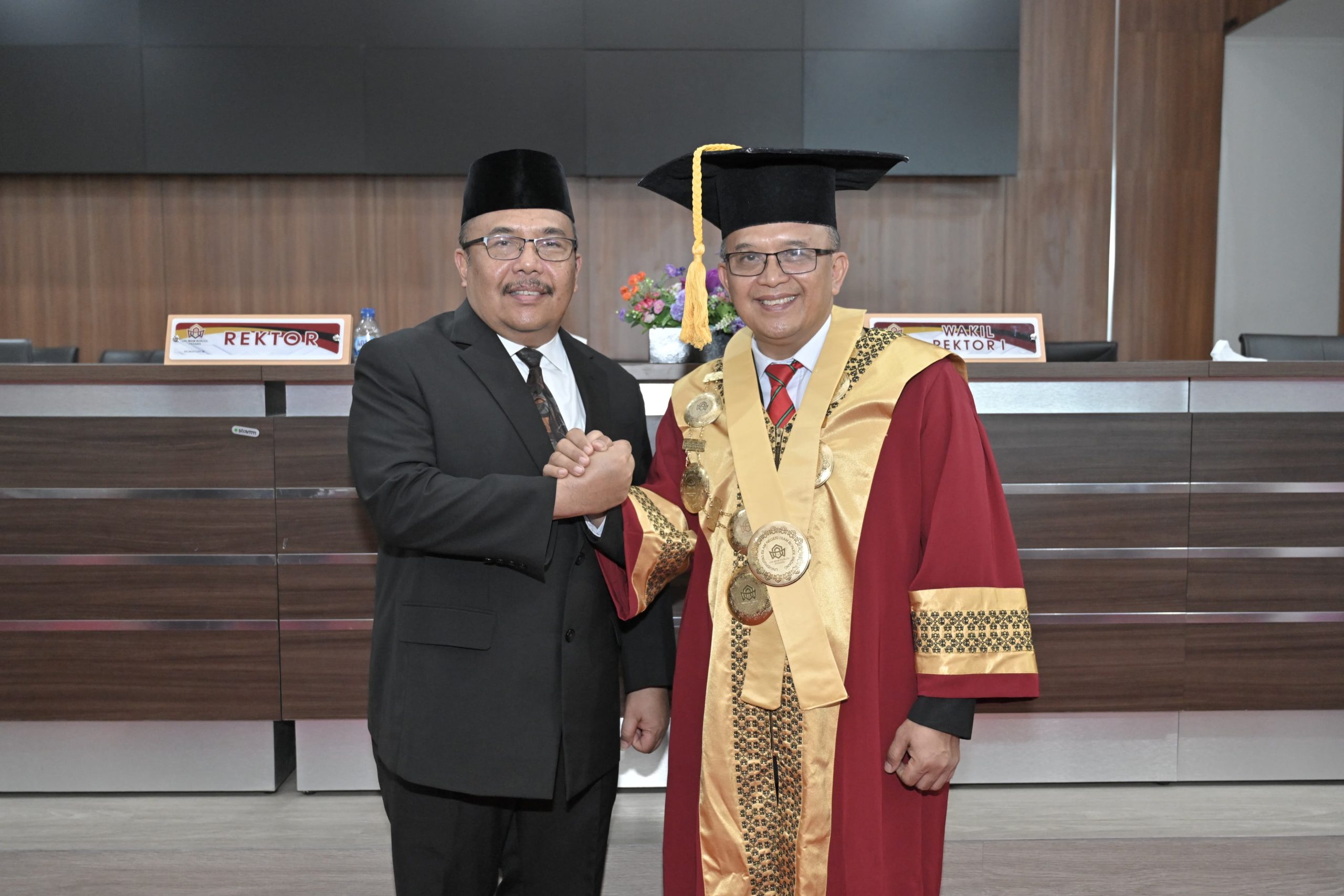 PADANG, PARADISO INDONESIA  – Universitas Islam Negeri (UIN) Imam Bonjol Padang kembali mengukuhkan enam Guru Besar dalam Sidang Senat Terbuka yang berlangsung di Kampus III Sungai Bangek, Padang, Senin (27/11/2023). Sekretaris Daerah Provinsi (Sekdaprov) Sumatera Barat (Sumbar), Hansastri menyebutkan, bahwa bertambahnya guru besar berimplikasi kepada meningkatnya kualitas, peran, serta fungsi perguruan tinggi.
