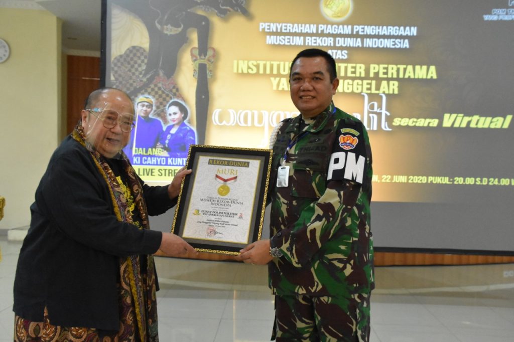 Paradiso.co.id|Jakarta – Dalam rangka memperingati Hari Ulang Tahun (Hut) ke-74 Polisi Militer TNI Angkatan Darat (Pomad) tahun 2020, Pusat Polisi Militer Angkatan Darat (Puspomad) menggelar Wayang Kulit yang ditampilkan secara Virtual melalui Youtube, di Markas Puspomad (Mapuspomad), Jalan Merdeka Timur No.17, Gambir, Jakarta Pusat, Senin, (22/6/20). Atas kegiatan ini, POM TNI AD akhirnya mendapatkan Rekor MURI sebagai “Institusi Militer Pertama yang menggelar wayang Kulit secara Virtual”.