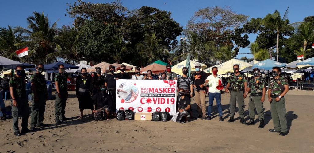 PARADISO.CO.ID I DENPASAR – Seribu masker dibagikan gratis kepada pengunjung pantai Legian, Kuta oleh Forum Komunikasi Antarmedia Bali Bangkit, Rabu (9/9/2020).