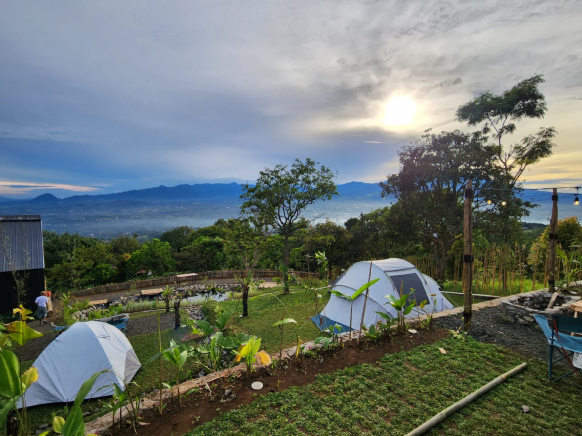 Suasana camping dijamin berkesan dengan menikmati pemandangan spektakuler dari Tamasya Highland yang meliputi citylight, Gunung Gede Pangrango, dan Gunung Salak.