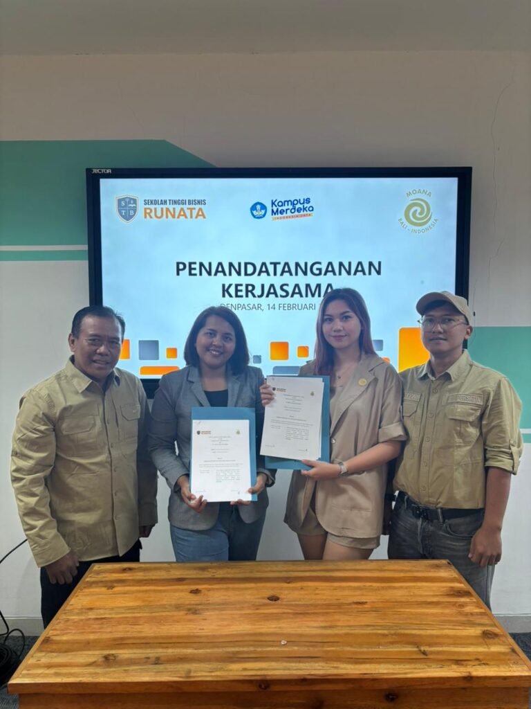 DENPASAR— Sekolah Tinggi Bisnis Runata resmi menandatangani Nota Kesepahaman (MoU) dengan Persatin RANGER dalam upaya memperkuat kolaborasi pendidikan dan konservasi lingkungan di Bali.