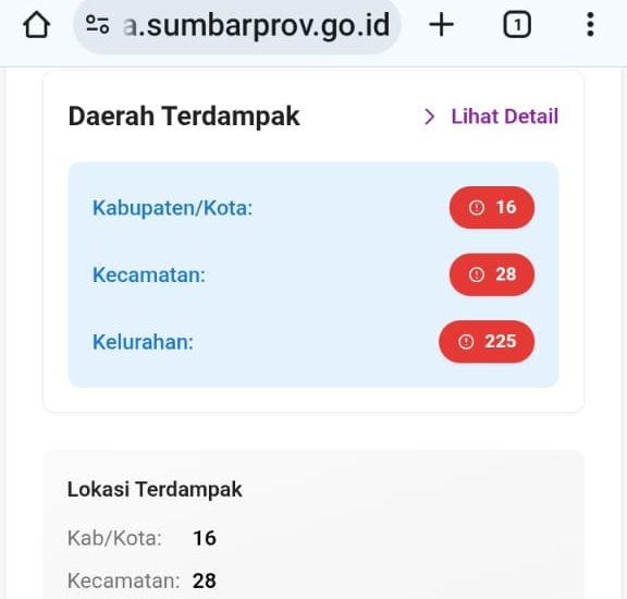 “Sumatra Barat sudah lebih pulih di hari ketiga. Apalagi sekarang tidak ada hujan, dan Operasi Modifikasi Cuaca (OMC) masih terus dilakukan,” jelasnya.