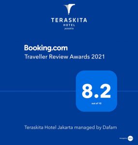 Booking.com merupakan platform yang mempermudah semua orang menjelajahi dunia, mengumumkan Teraskita Hotel Jakarta managed by Dafam sebagai salah satu pemenang Traveller Review Awards 2021, dengan hampir satu juta (986.449) Award yang diberikan di 220 negara dan wilayah. Hal ini membuktikan bahwa hotel yang juga meraih sertifikat CHSE dari Kemenparekraf dengan perfect score ini dapat memberikan pelayanan terbaik ditunjang dengan fasilitas dan produk yang bermutu sehingga menghasilkan pengalaman terbaik bagi para tamu hotel yang berkunjung maupun menginap di hotel ini.