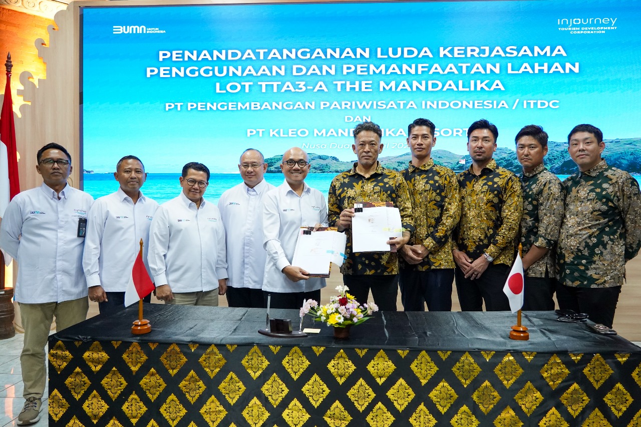 NUSA DUA, PARADISO INDONESIA — PT Pengembangan Pariwisata Indonesia atau ITDC, perusahaan pengembang dan pengelola kawasan pariwisata terintegrasi di Indonesia, hari ini Senin, (21/04) secara resmi menandatangani perjanjian Land Utilization and Development Agreement (LUDA) dengan PT Kleo Mandalika Resort, untuk pengembangan lahan seluas 101.185 m2 yang akan dibangun Hotel Bintang 5 berkonsep Luxury Brand Collection, berlokasi di Lot TTA3-A, kawasan Pantai Tanjung Aan, bagian timur Kawasan Ekonomi Khusus (KEK) Mandalika, Kabupaten Lombok Tengah, Provinsi Nusa Tenggara Barat (NTB).