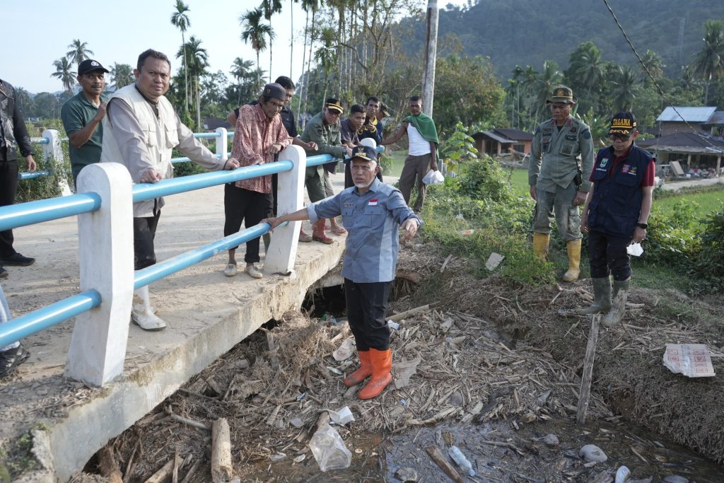 PESSEL, PARADISO INDONESIA – Gubernur Sumatera Barat (Sumbar), Mahyeldi Ansharullah, meninjau kembali dampak kejadian serta aktivitas penanganan pascabencana banjir dan longsor di Nagari Duku Utara, Koto XI Tarusan, Kabupaten Pesisir Selatan (Pessel), Sabtu (16/03/2024). Dalam kesempatan itu, Gubernur mengimbau seluruh Pemerintah Kabupaten dan Kota di Sumbar lebih aktif membantu pemulihan pascabencana di Pessel dan daerah terdampak lainnya.