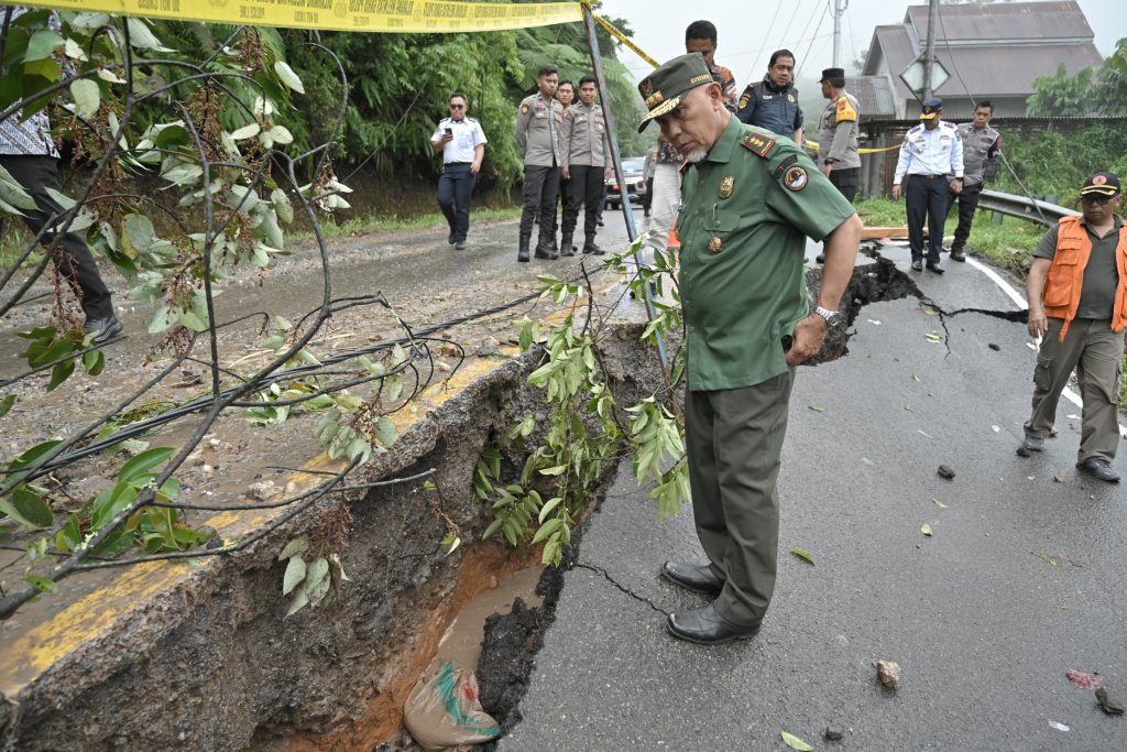 LIMA PULUH KOTA, PARADISO INDONESIA –Gubernur Sumatera Barat (Sumbar), Mahyeldi Ansharullah meninjau kondisi sejumlah titik jalan Sumbar-Riau yang rusak pascabencana longsor di Kabupaten Lima Puluh Kota beberapa hari yang lalu. Mengingat pentingnya akses jalan antarprovinsi tersebut, Gubernur berharap perbaikan jalan utama itu bisa rampung secepat mungkin.