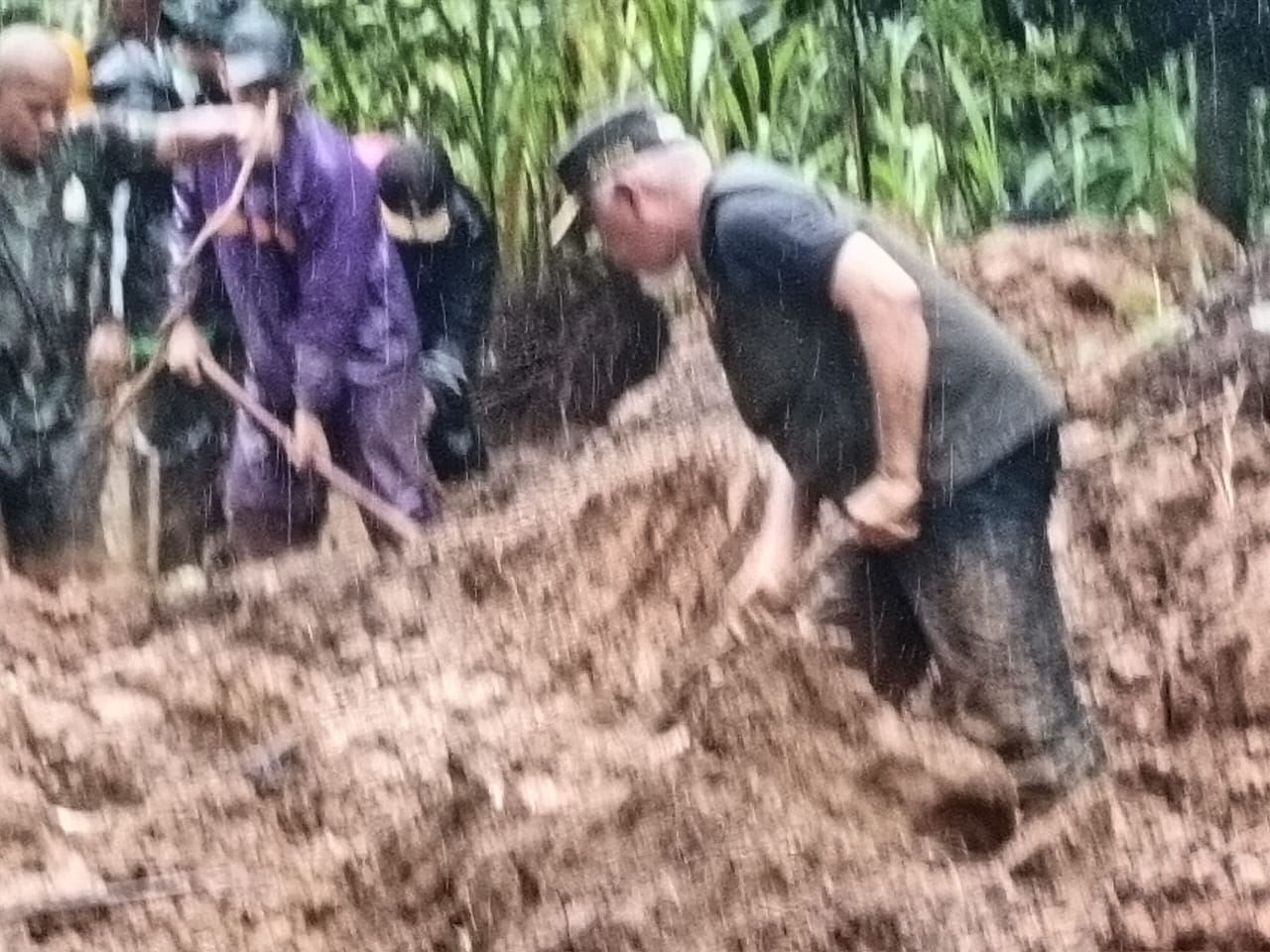 Ia menjelaskan bahwa penanganan di lapangan terkendala oleh kondisi material longsor yang cukup berat. Tidak hanya berupa tanah, tetapi juga batu-batu besar dan kayu yang terbawa dari reruntuhan tebing.