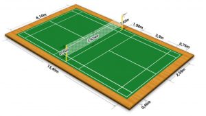 Berdasarkan pendapat di atas, disimpulkan bahwa bulu tangkis merupakan cabang olahraga yang dimainkan menggunakan net, raket, dan cocks untuk menjatuhkan bola ke lapangan lawan. Berikut ditunjukkan gambar lapangan bulu tangkis :