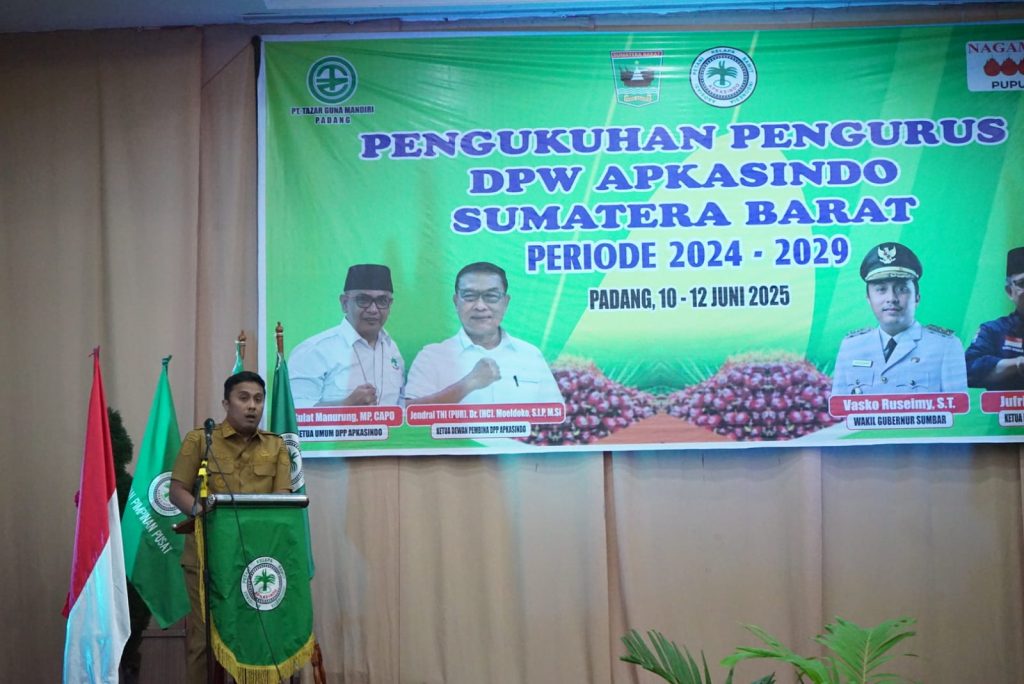 PADANG, PARADISO INDONESIA – Wakil Gubernur Sumatera Barat (Wagub Sumbar), Vasko Ruseimy, menegaskan komitmennya untuk terus membela kepentingan petani sawit di Sumbar. Hal itu ia sampaikan saat menghadiri pengukuhan pengurus DPW Asosiasi Petani Kelapa Sawit Indonesia (Apkasindo) periode 2024–2029 di Padang, Selasa (10/6/2025).