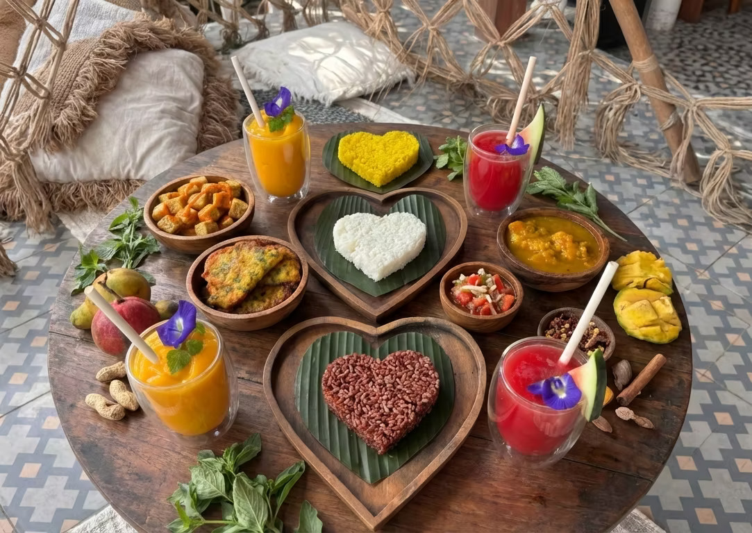 Dapur Wild berfokus pada bahan organik, pengetahuan herbal turun‑temurun, serta eksperimen modern. Dari ayam olahan, hidangan khas Bali, minuman fermentasi, hingga pencuci mulut tanpa gula — semua disiapkan dengan kesungguhan. Makanan di sini bukan hanya untuk memberi rasa kenyang, tetapi juga untuk menjaga kesehatan tubuh.
